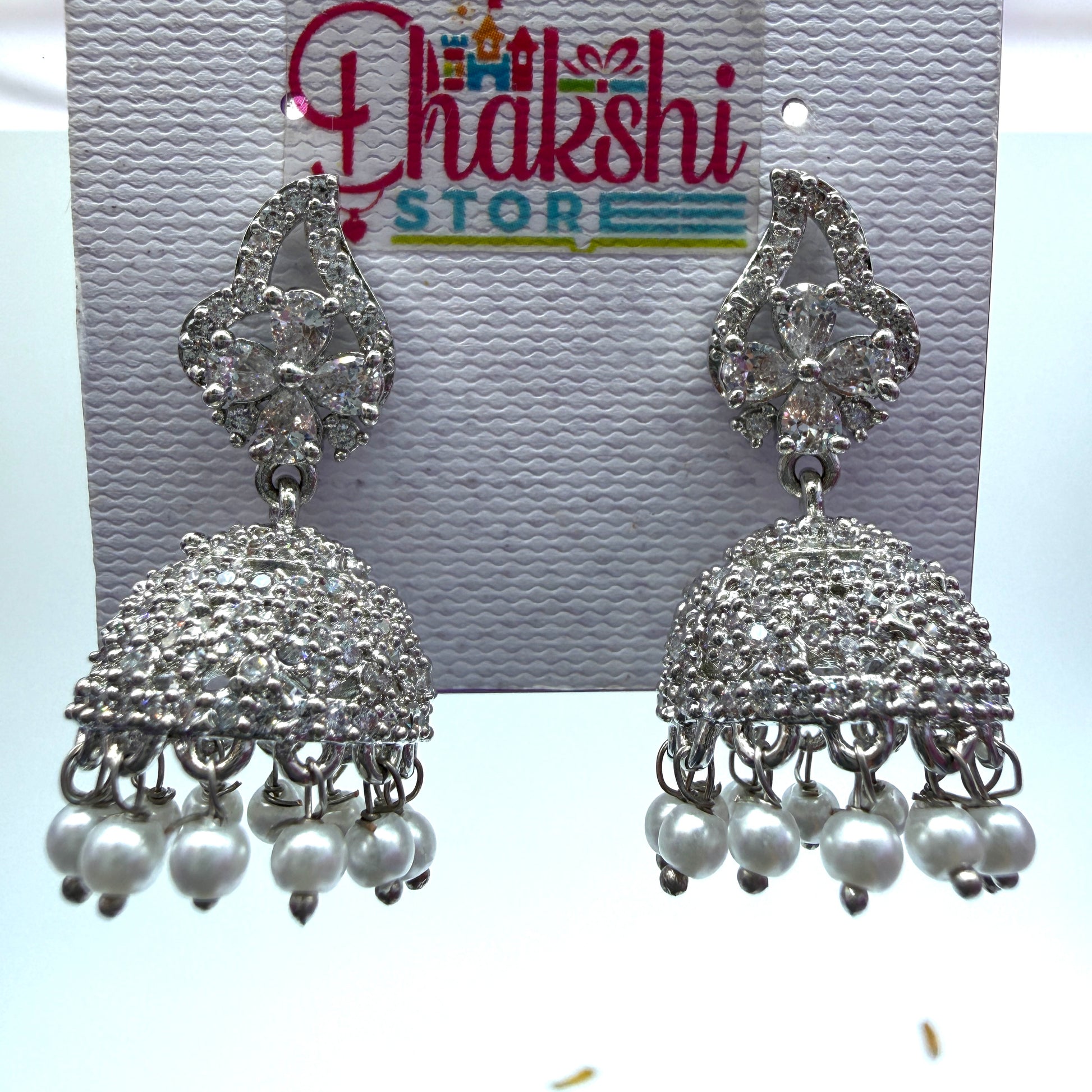 Silver Crystal Designer Jhumka Earrings with Pearl Drops – Luxury Party Wear