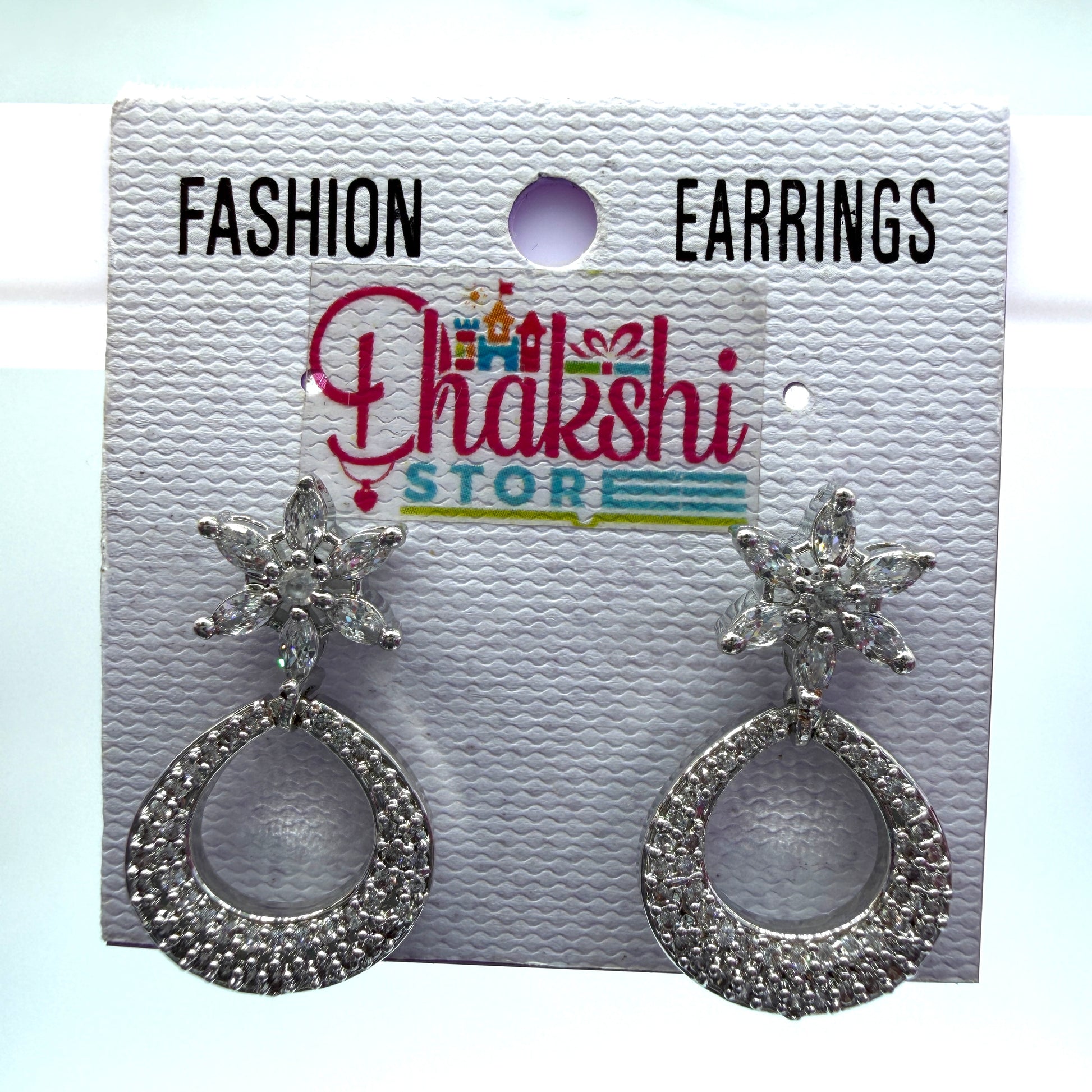 Silver Floral Crystal Drop Earrings – Elegant Party Wear